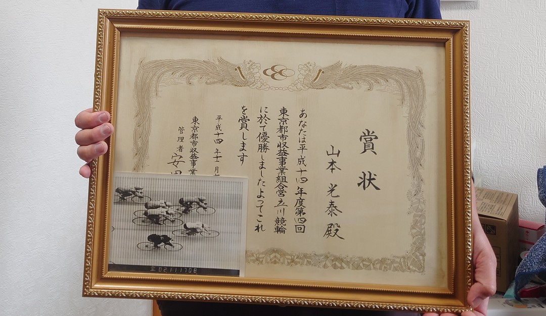 立川で完全優勝した時じゃないですかね。(賞状の写真) 立川は相性が良くて。B級、A級両方で完全優勝してるし、まぁS級にはいけなかったんですけど(笑)